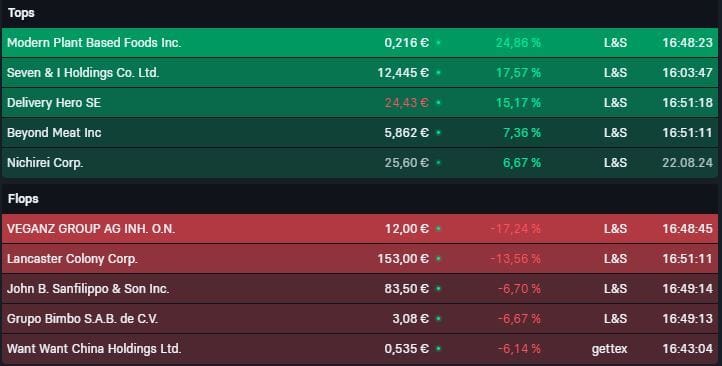 Tops & Flops (Food) der letzten Woche an den Börsen.
