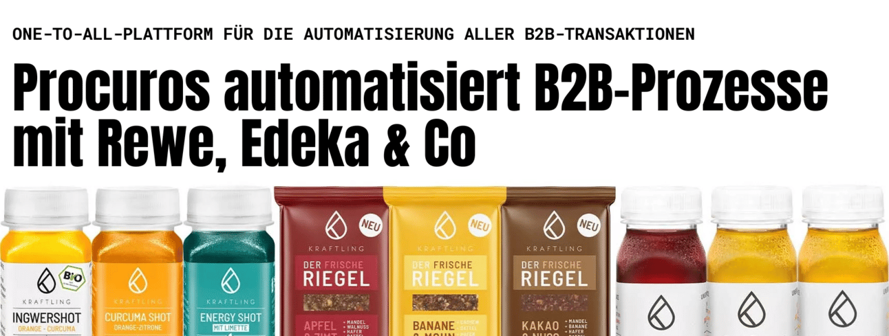 Procuros automatisiert den gesamten B2B-Datenaustausch mit Handelspartnern wie REWE, Edeka & Co. – Bestellungen, Lieferavise, Rechnungen, alles läuft vollautomatisch direkt ins System. Kein manuelles Nacharbeiten mehr. Wie das konkret aussieht? Beispiel Kraftling: