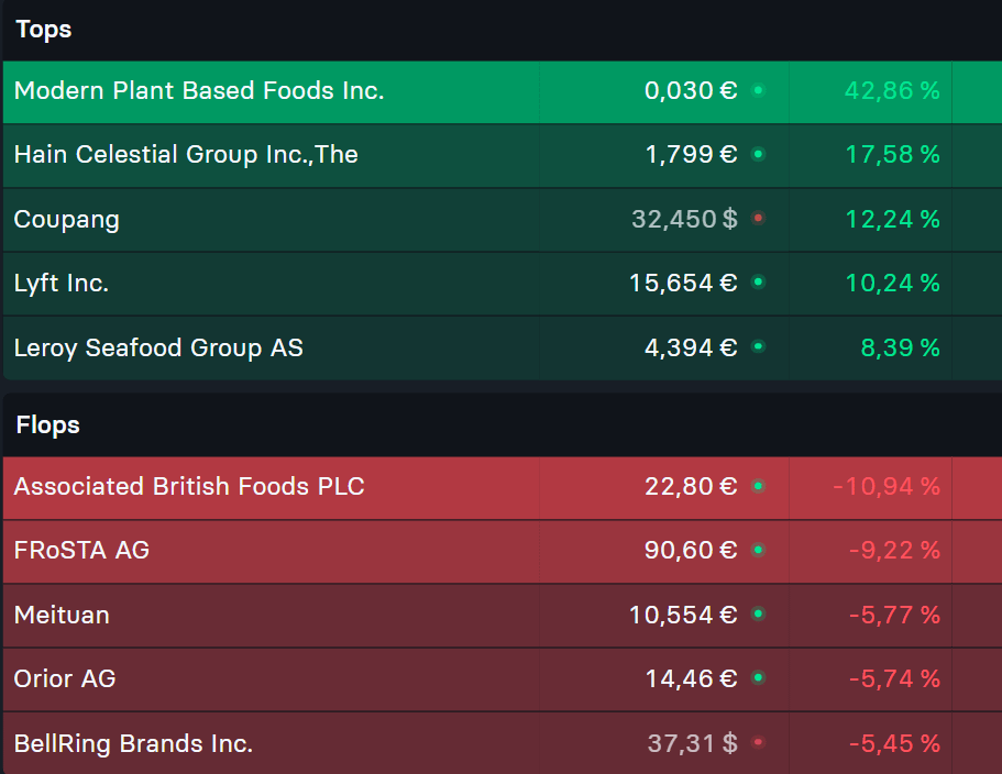 Top & Flop F&B-Aktien dieser Woche
