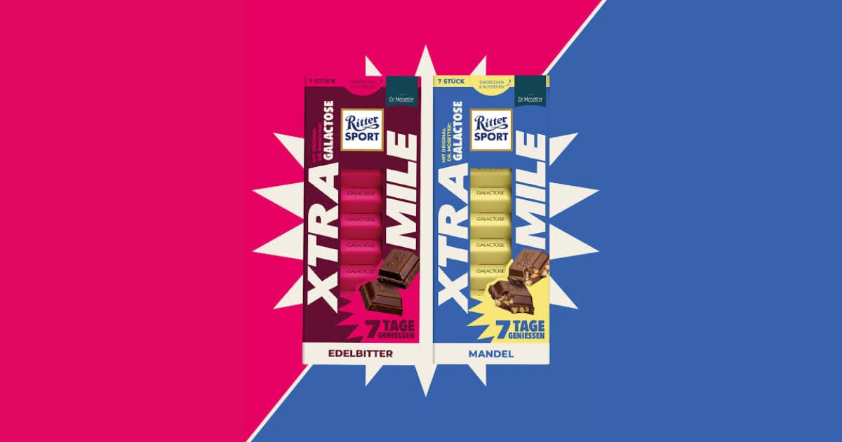 🍫 Ritter Sport launcht neue Schokolade auf Basis von Galaktose. Die neue Range „Xrta Mile“ basiert auf Galaktose statt klassischem Zucker. Der Einfachzucker wird vom Körper ohne Insulin aufgenommen und eignet sich damit auch für Menschen mit Insulinresistenz oder Diabetes. Entwickelt wurde das Konzept gemeinsam mit dem Arzt und Entwickler des Dr. Mosetter Prinzips, das auf einen ganzheitlichen Gesundheitsansatz setzt.