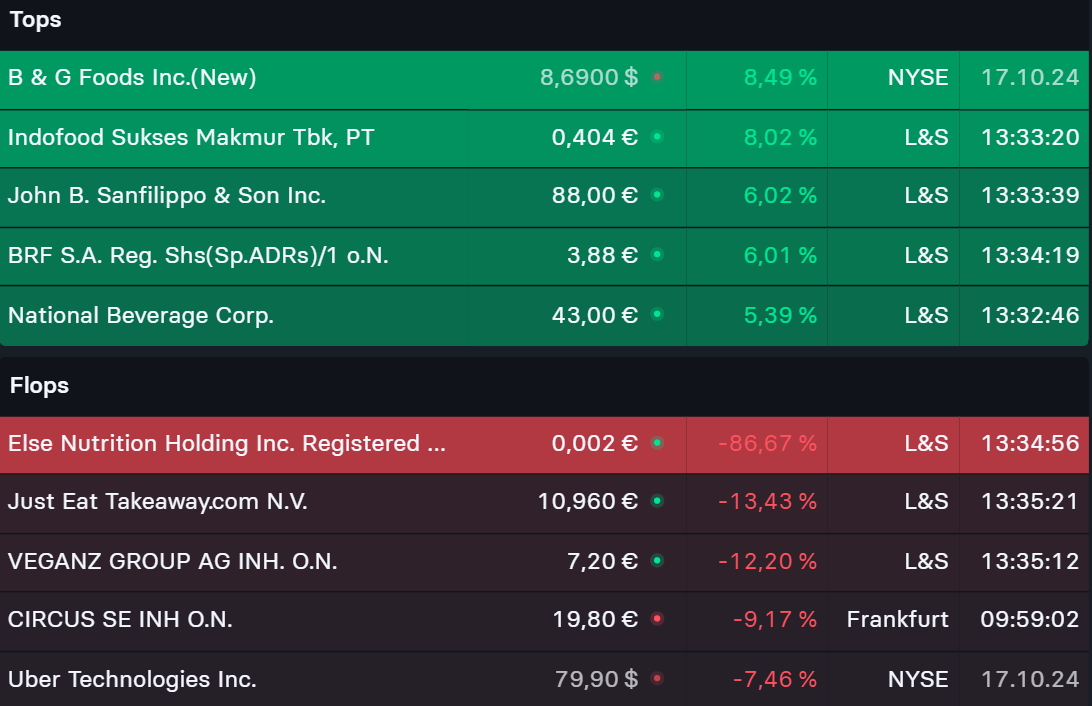 Tops & Flops (Food) der letzten Woche an den Börsen.