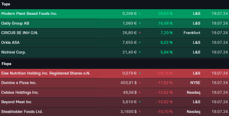 Tops & Flops (Food) der letzten Woche an den Börsen.