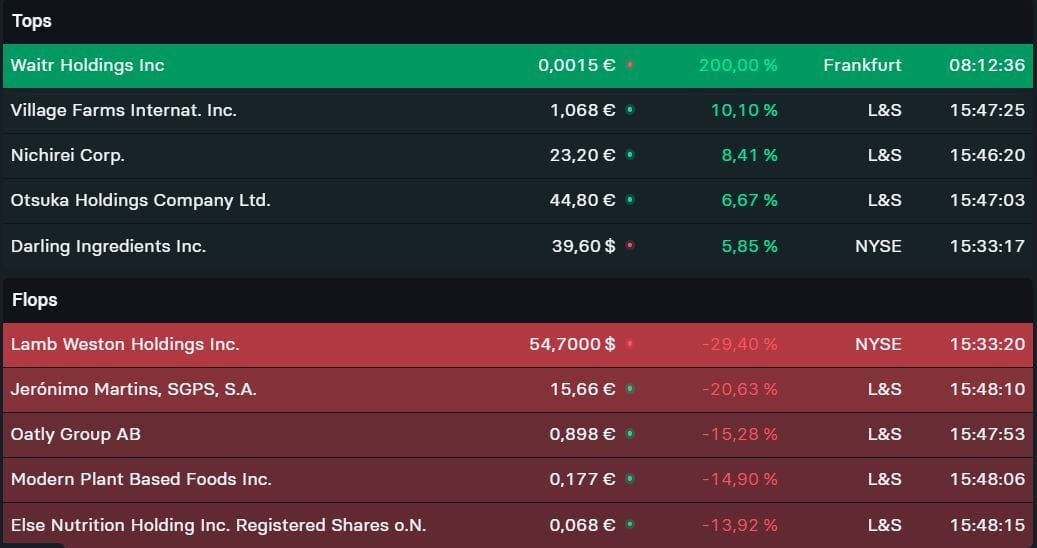 Tops & Flops (Food) der letzten Woche an den Börsen.